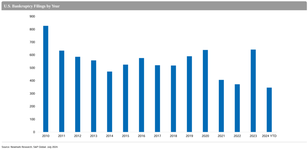 There have been 346 bankruptcy filings in the US so far this year, which is the most in 13 years.