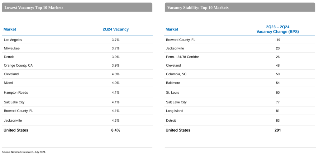 Cleveland remains one of the steadiest industrial real estate markets in the entire country. As of Q2 2024, Cleveland had a 4% vacancy rate in the industrial sector, outperforming several strong Florida markets.
