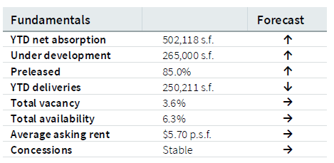 On the development side, the market remains highly disciplined. JLL reports a modest 265,000 square feet currently under development, while other sources track a pipeline closer to 386,000 square feet. Critically, this new space is overwhelmingly pre-leased. JLL notes an 85% pre-leasing rate, while other reports confirm that the majority of the pipeline is build-to-suit. This disciplined approach prevents oversupply and ensures that new product is meeting immediate, confirmed demand, which in turn supports strong rental rates and property values.